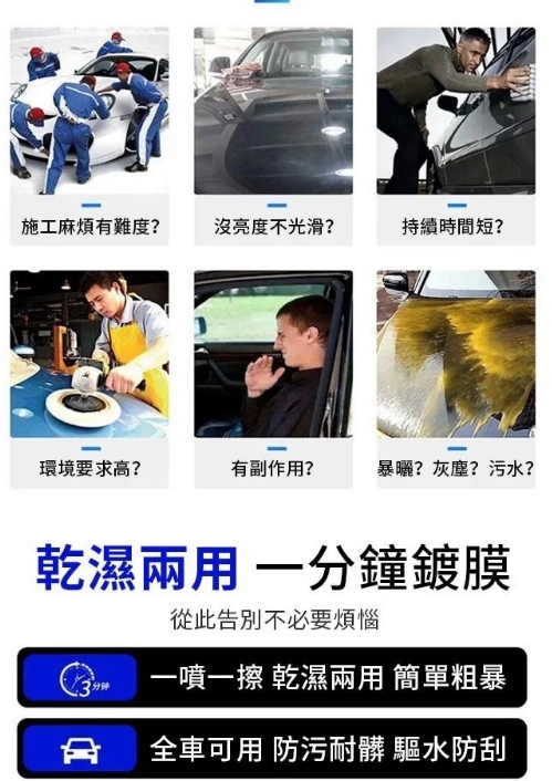 7分鐘前全台車友狂推NO.1的【納米汽車鍍膜液】一噴一擦變新車,鍍膜塗層長期保護車漆,灰塵、泥土、雨水一滴不沾! 限時特惠!! - 98%客戶選擇【特惠5入組】贈送汽車鍍膜毛巾5條 僅需 NT$1298