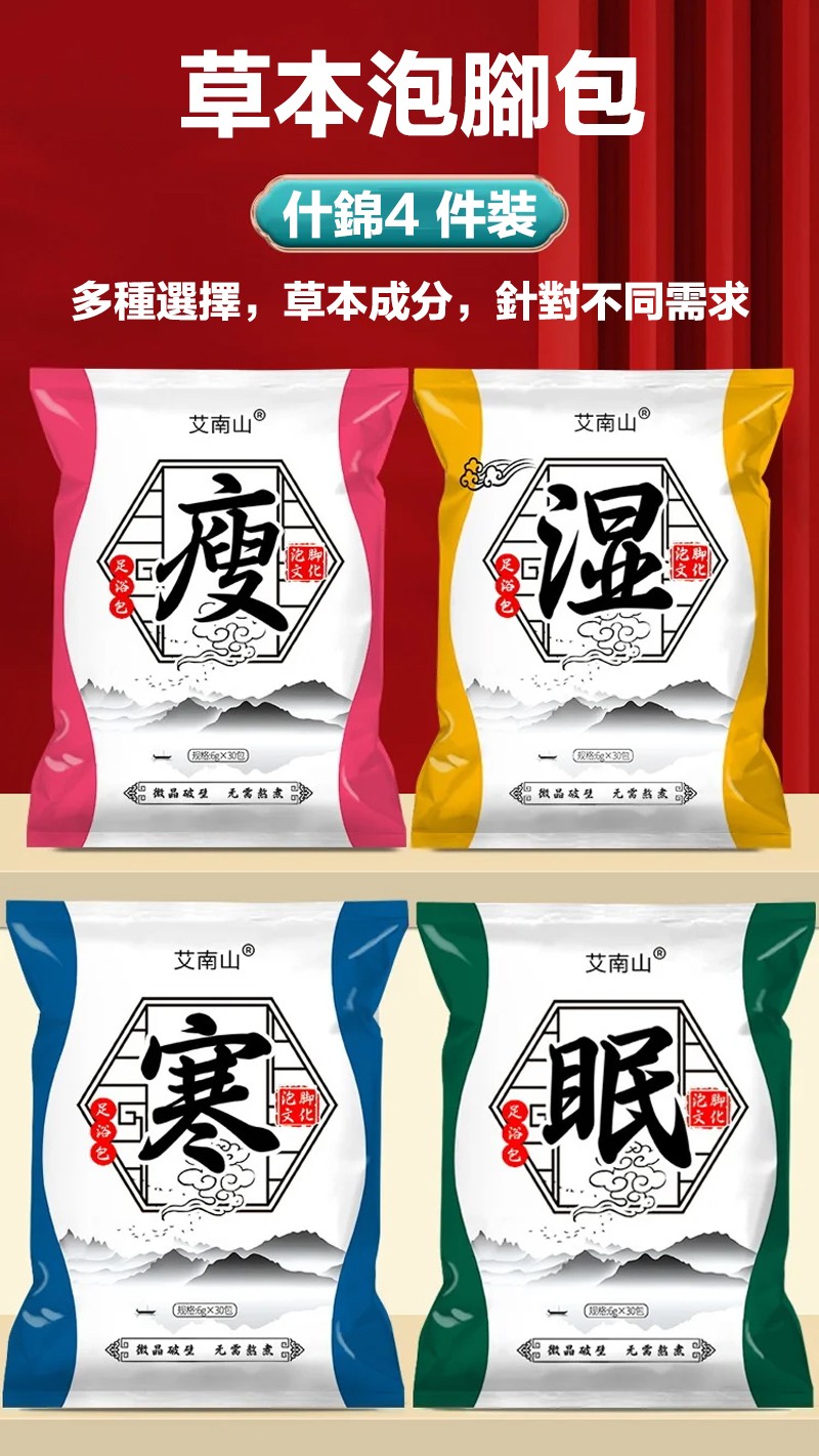 11分鐘前艾草足浴包 草本配方,真材實料,四季皆宜,驅寒排濕,促進血液循環,改善內分泌,提高睡眠質量, - 超值嘗鮮【四款配方任選2入組*60包 均價16】-NT$899
