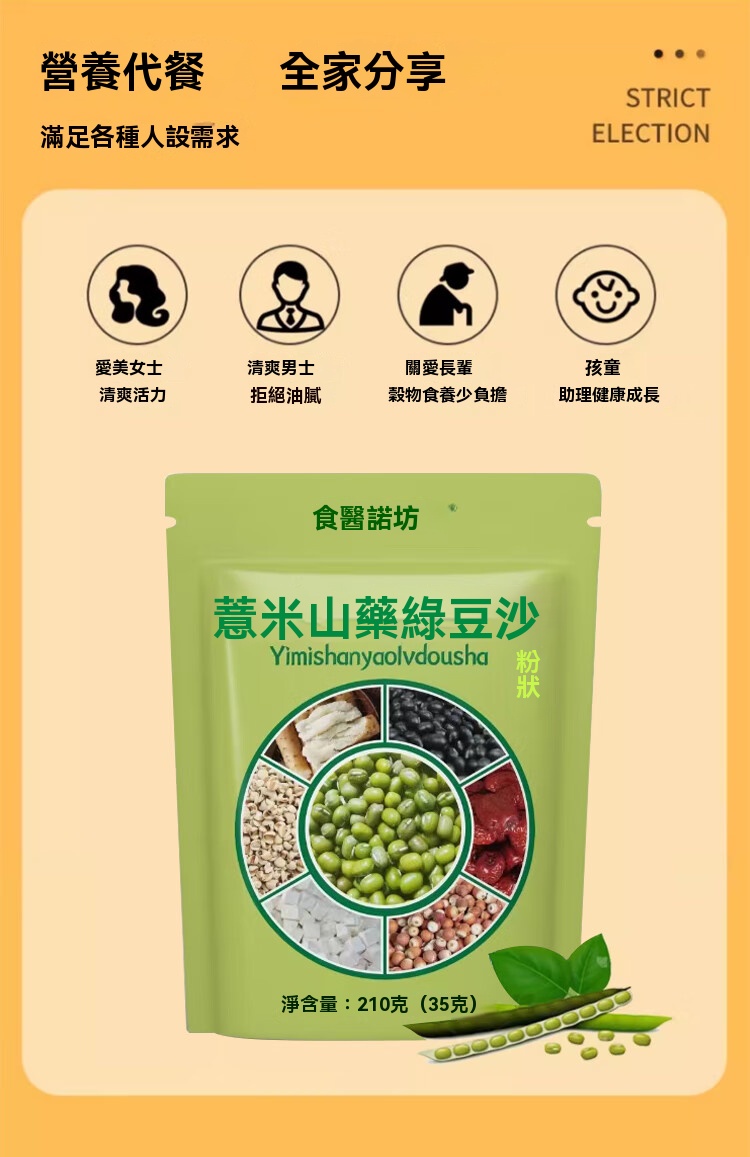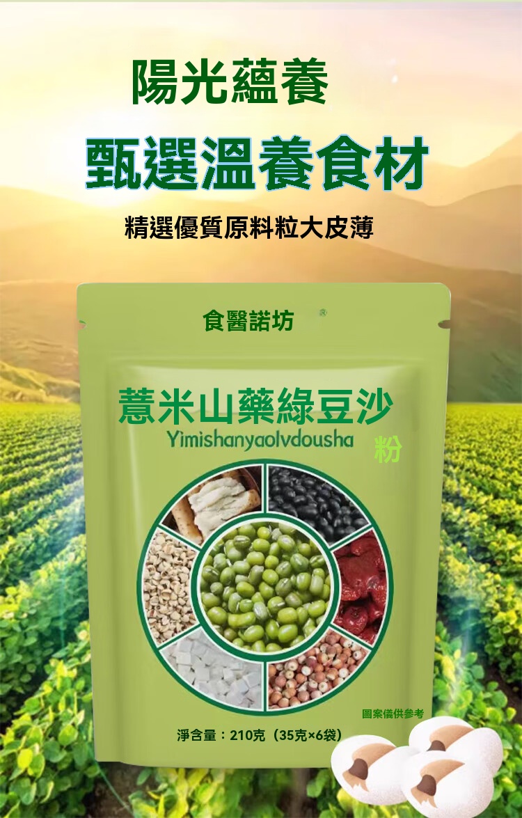 25分鐘前養生精選!薏米山藥綠豆沙 - 維生素滿點,清爽滋補甜品 - 【買五送四】全家福健康套餐-共九袋NT$1598