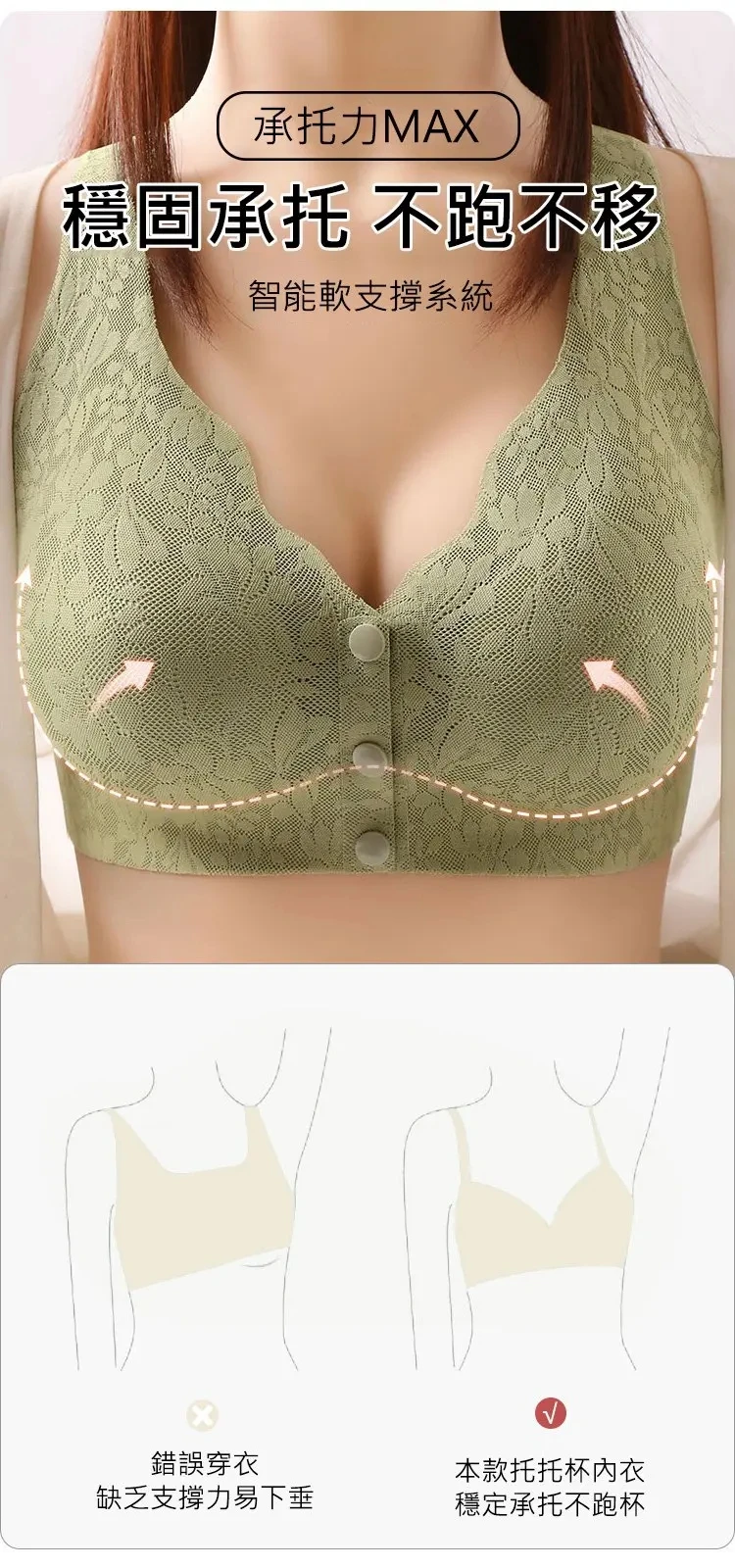 此款內衣專為方便而設。前開扣設計,穿脫輕鬆,節省時間。精選柔軟面料,貼合肌膚,舒適無比。不僅能完美支撐胸部,保持胸型,還兼具美觀。適合各年齡女性,尤其是手部不靈活者或需快速穿衣者。